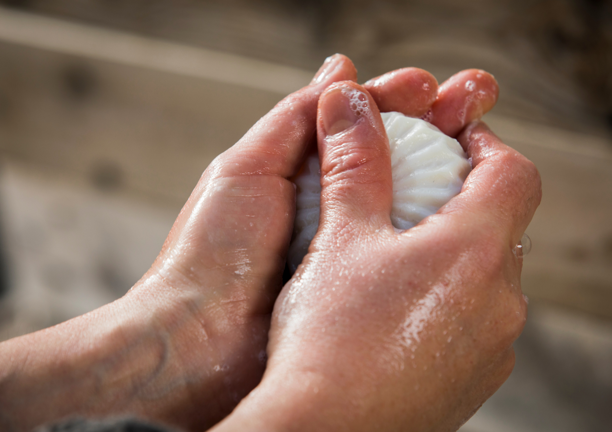 Quand je deviens trop petit, glisse-moi dans un sachet « sauve-savon » en coton bio fait main, disponible en boutique.