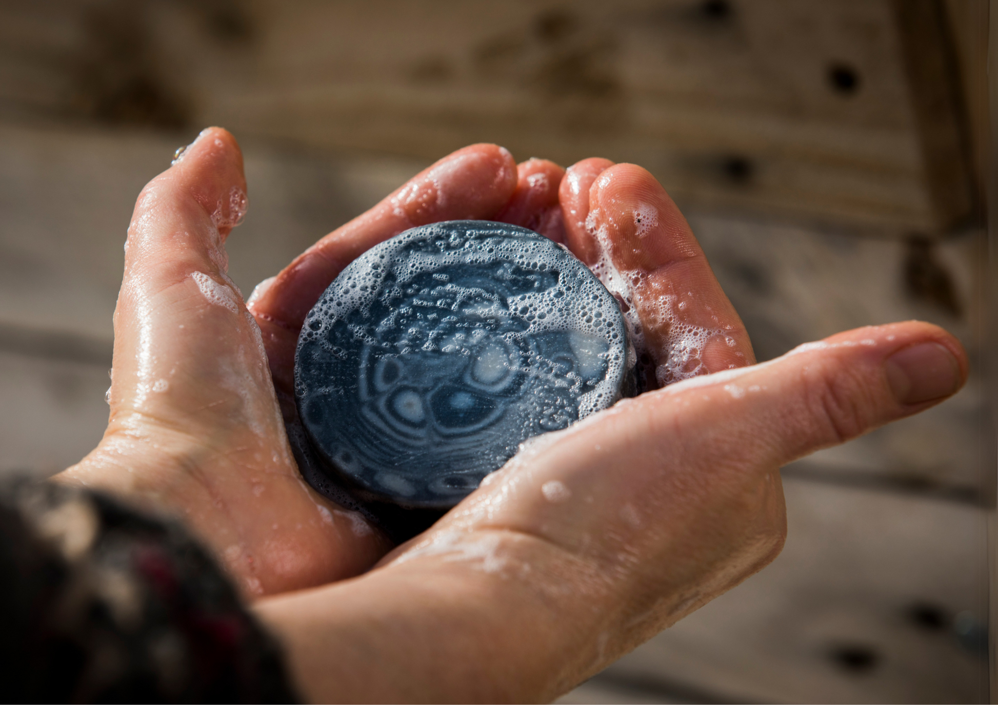 Lorsque je deviens trop petit, place-moi dans un sachet « sauve-savon » fait main, en coton bio certifié Oeko-Tex (disponible en boutique), pour m’utiliser jusqu’à mon dernier éclat !